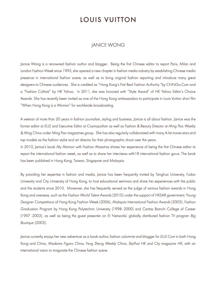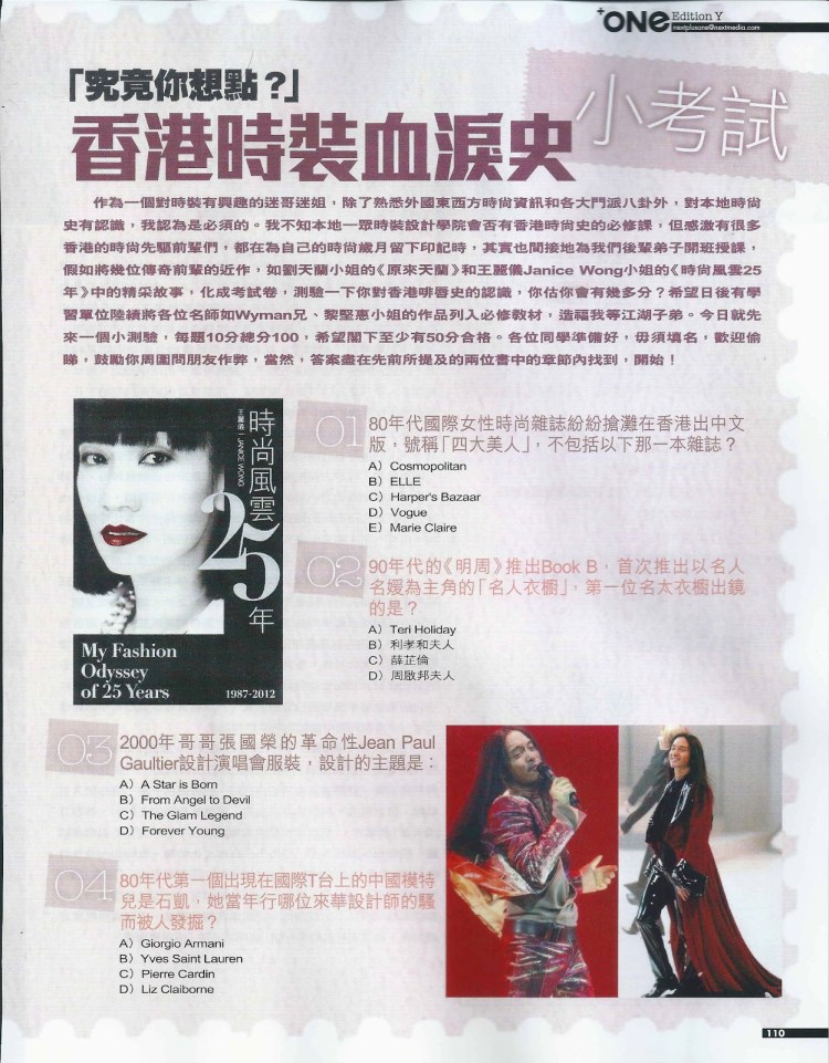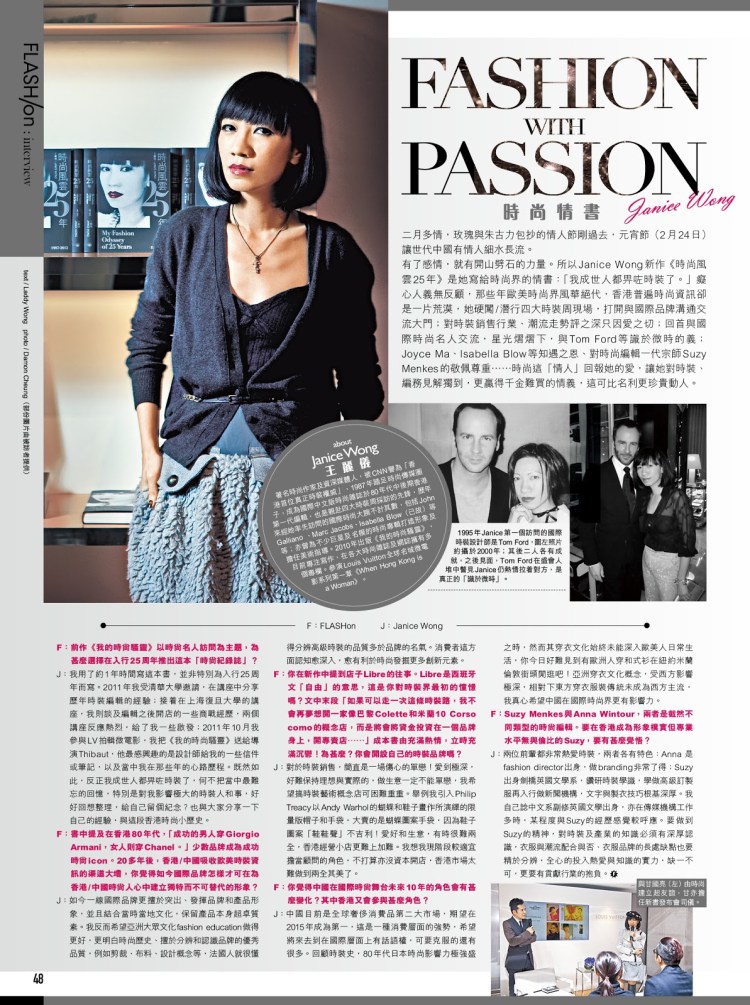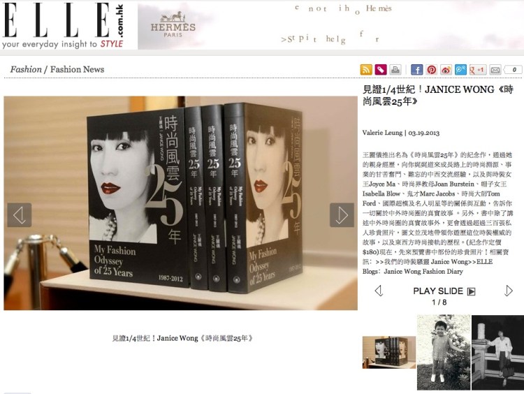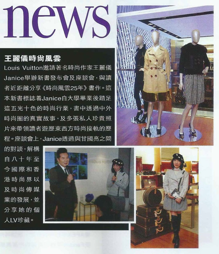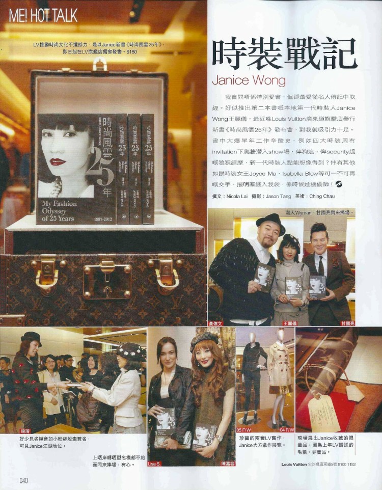 The book marks the 25th anniversary of Janice Wong’s journey in the fashion world. It brings readers to travel from 1980s to 2010s, to experience with the turns and twists in her life as well as the development of Hong Kong fashion media and the integration of fashion culture between the East and the West, through her insider stories and over 300 precious personal photos.